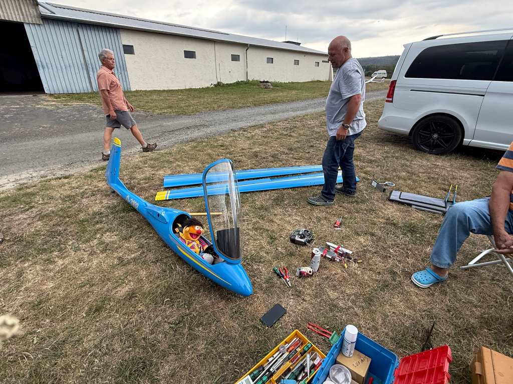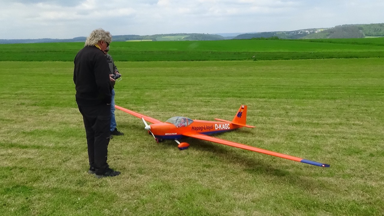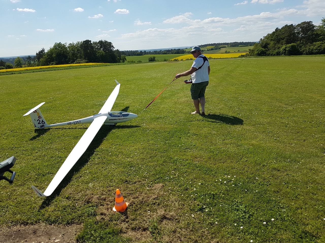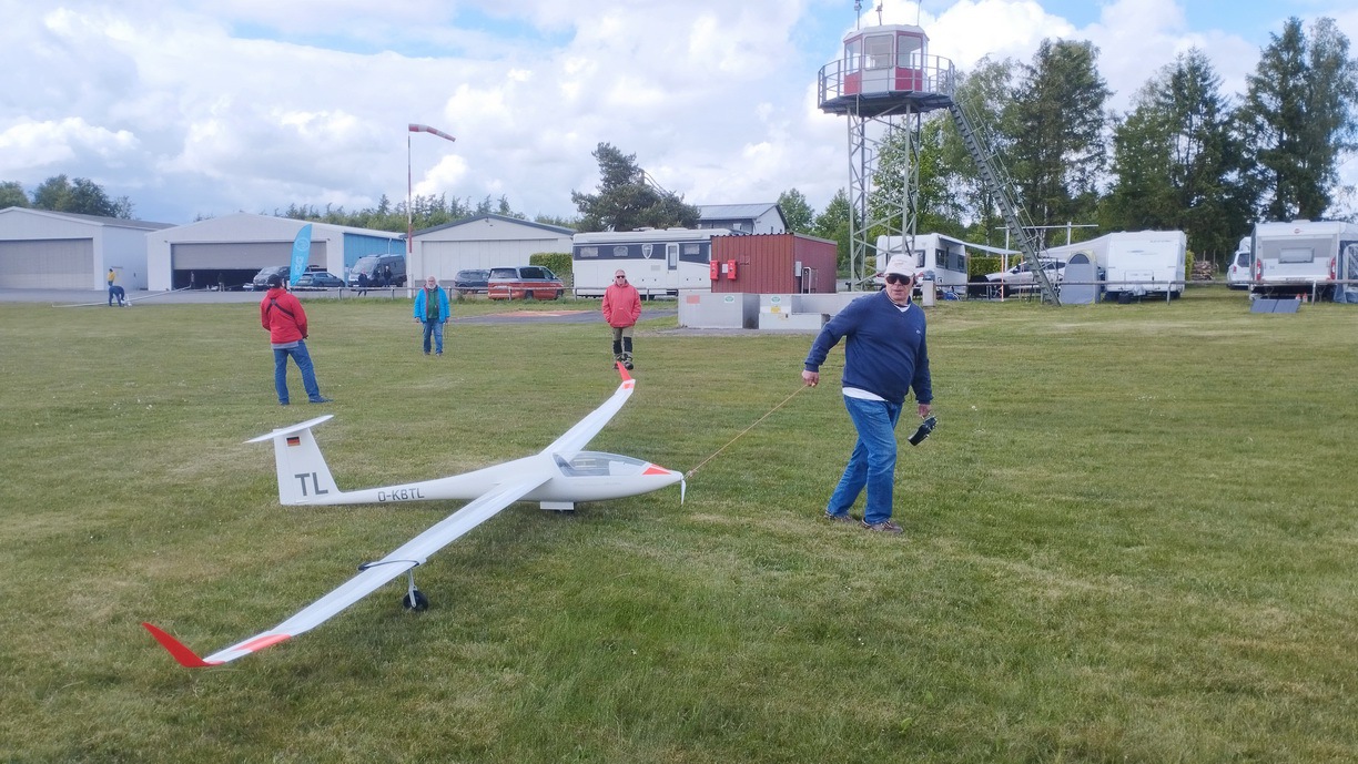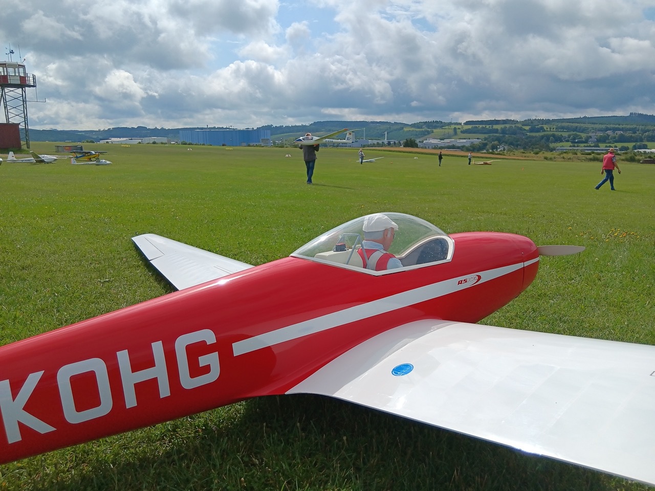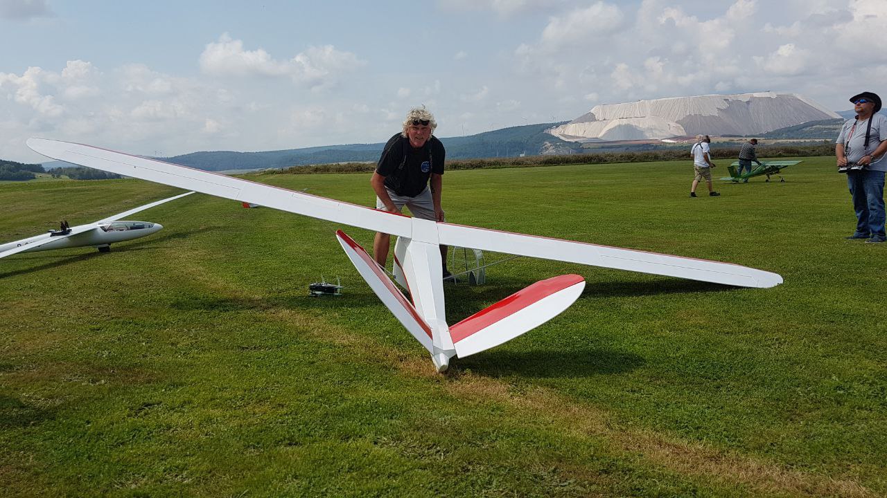 Alles in allem eine super Veranstaltung. Sonntags gab es noch mal was zum Schmunzeln. Unser Volker landete seine 1:2,5 ASK 23 sehr ordentlich, rollte vor seinen Füßen aus und dann plötzlich dieses unangenehme Wort „Sch……..“ !! Es fehlte die Kabinenhaube und der Sitz samt Pilot. Und keiner hatte gesehen wo der ausgestiegen war. Aber Hannelore persönlich war ja anwesend und es wurde direkt neu geordert……