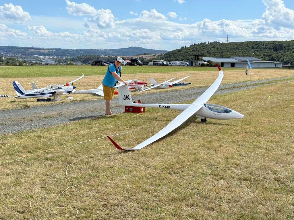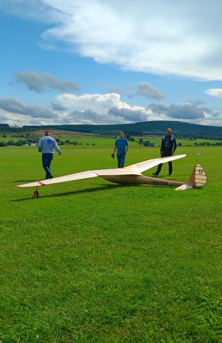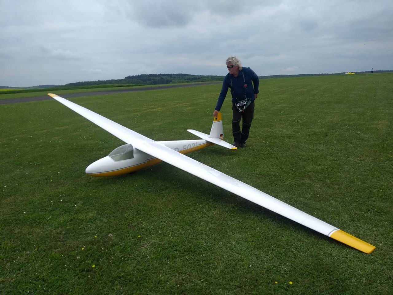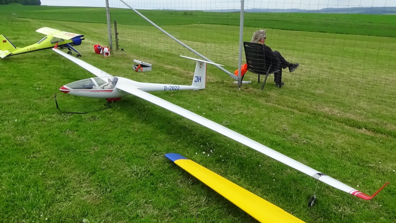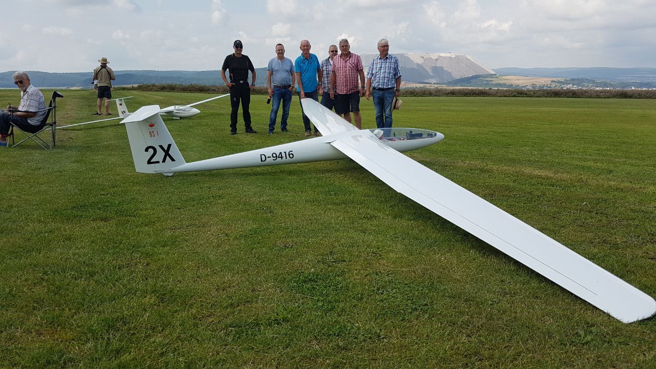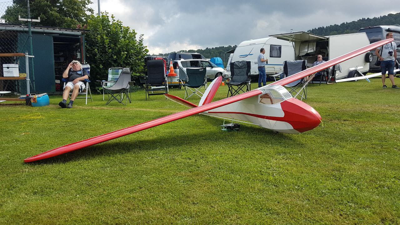 Alles in allem eine super Veranstaltung. Sonntags gab es noch mal was zum Schmunzeln. Unser Volker landete seine 1:2,5 ASK 23 sehr ordentlich, rollte vor seinen Füßen aus und dann plötzlich dieses unangenehme Wort „Sch……..“ !! Es fehlte die Kabinenhaube und der Sitz samt Pilot. Und keiner hatte gesehen wo der ausgestiegen war. Aber Hannelore persönlich war ja anwesend und es wurde direkt neu geordert……