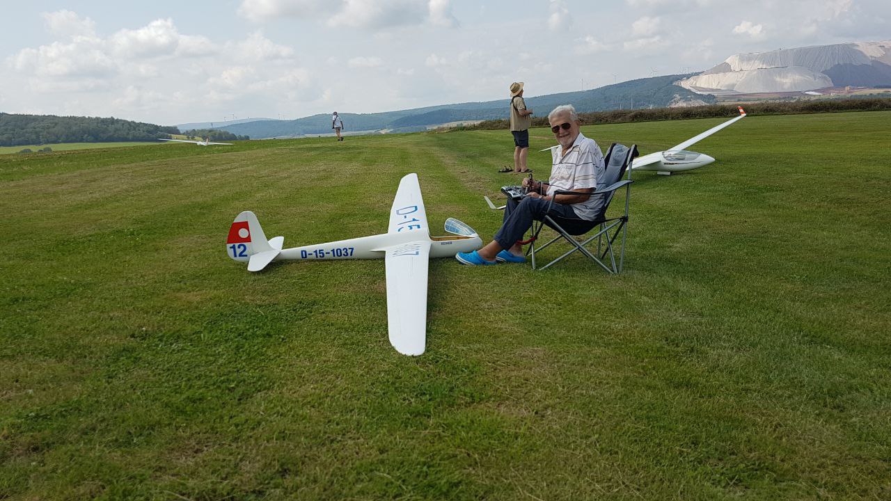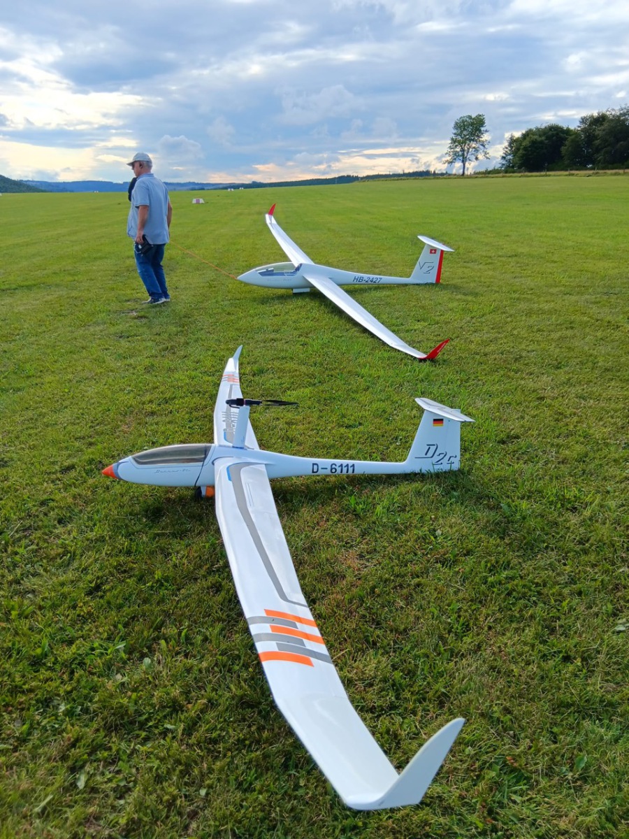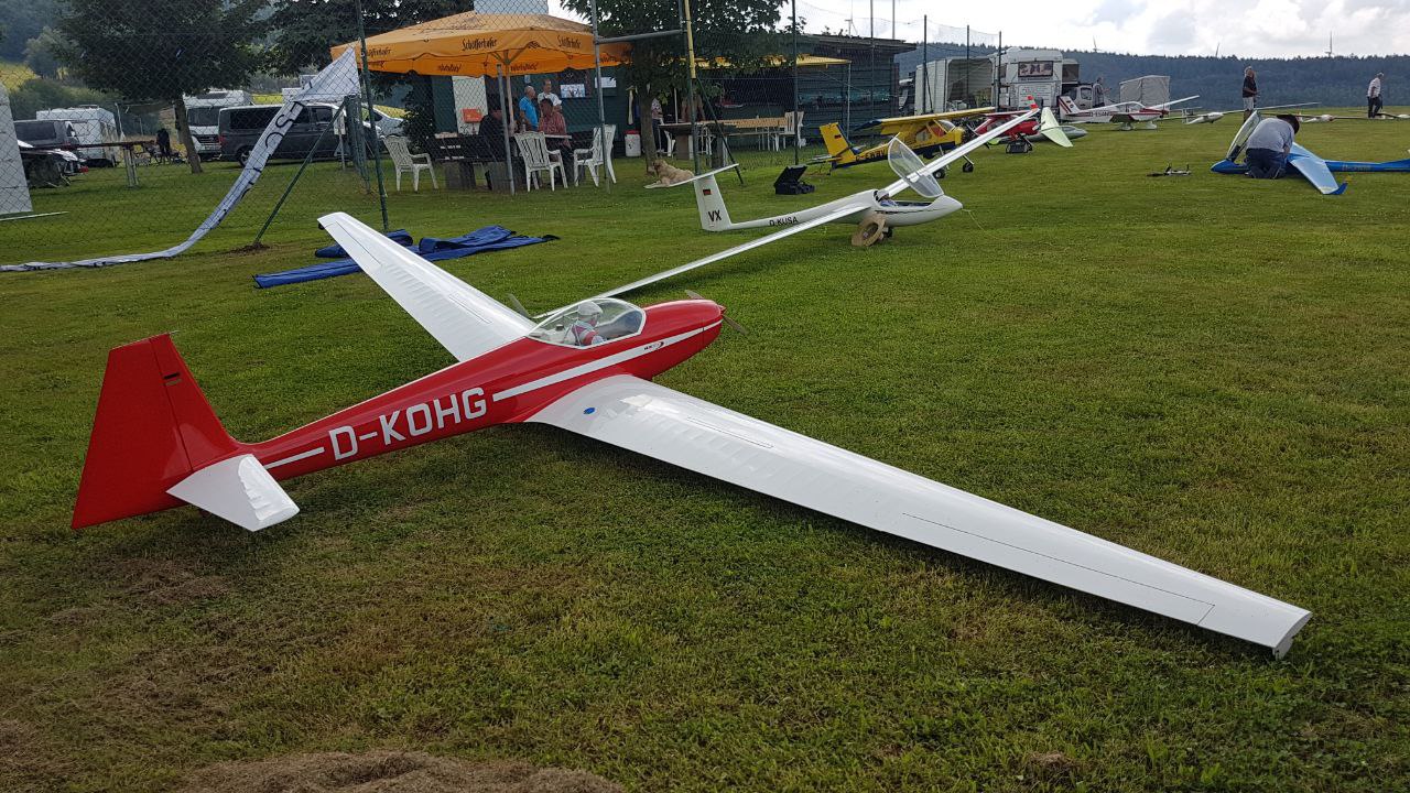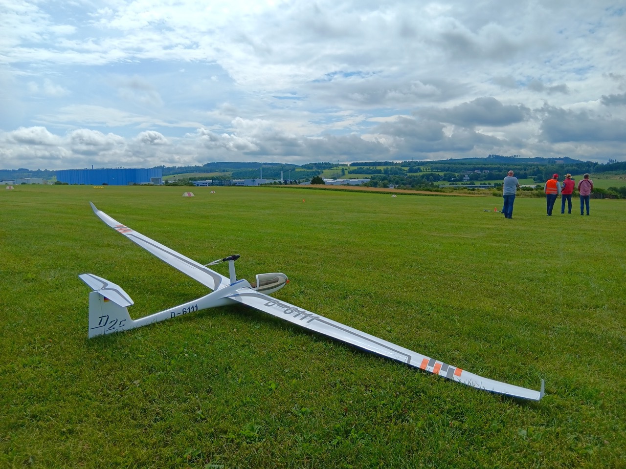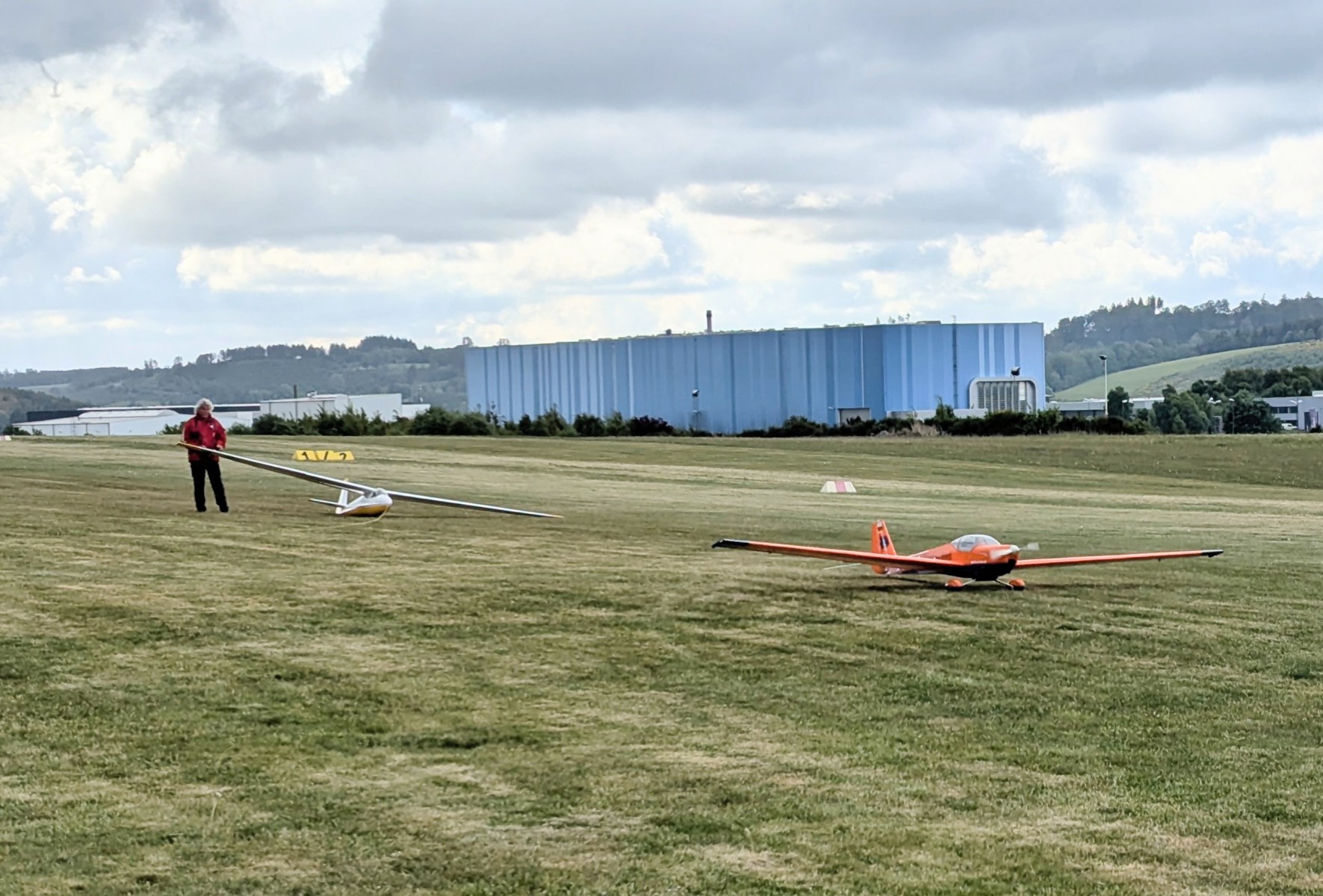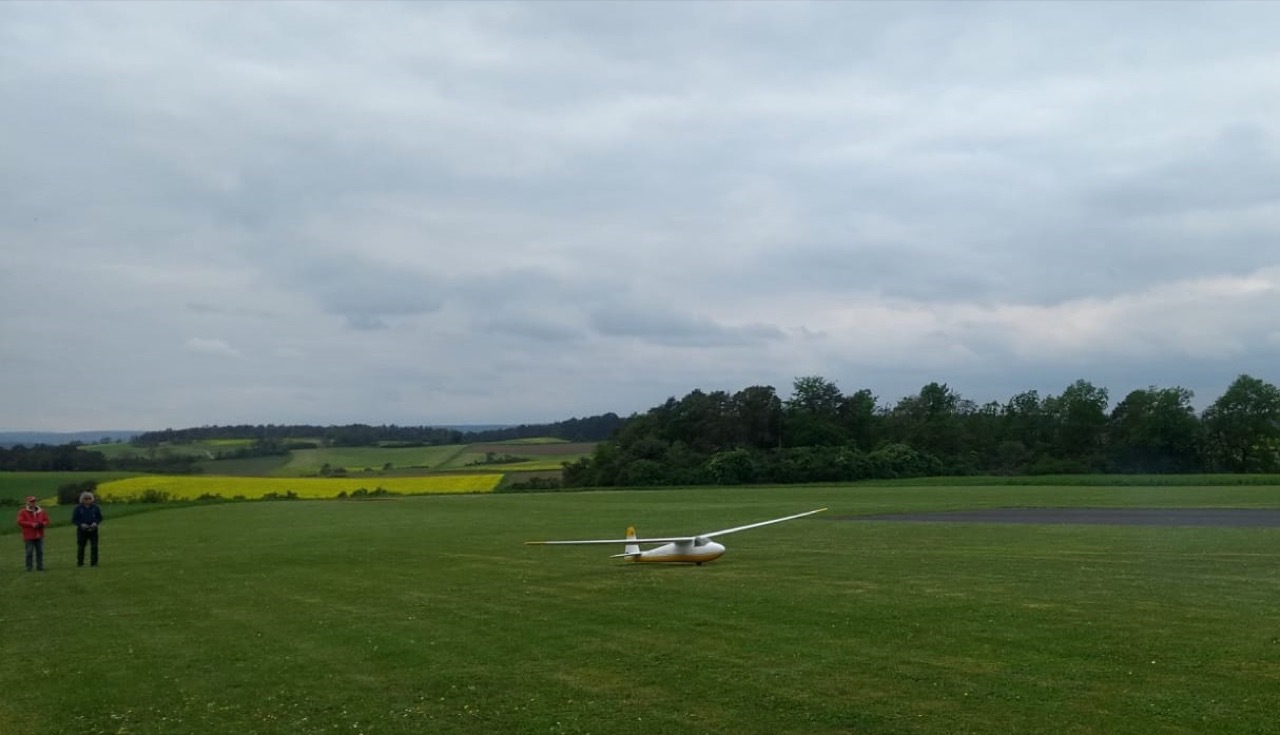 Alles in allem eine super Veranstaltung. Sonntags gab es noch mal was zum Schmunzeln. Unser Volker landete seine 1:2,5 ASK 23 sehr ordentlich, rollte vor seinen Füßen aus und dann plötzlich dieses unangenehme Wort „Sch……..“ !! Es fehlte die Kabinenhaube und der Sitz samt Pilot. Und keiner hatte gesehen wo der ausgestiegen war. Aber Hannelore persönlich war ja anwesend und es wurde direkt neu geordert……