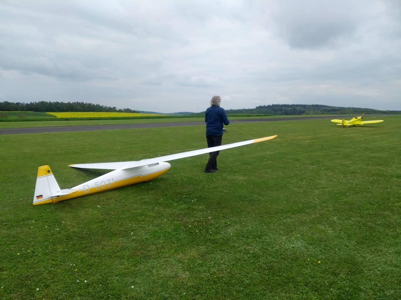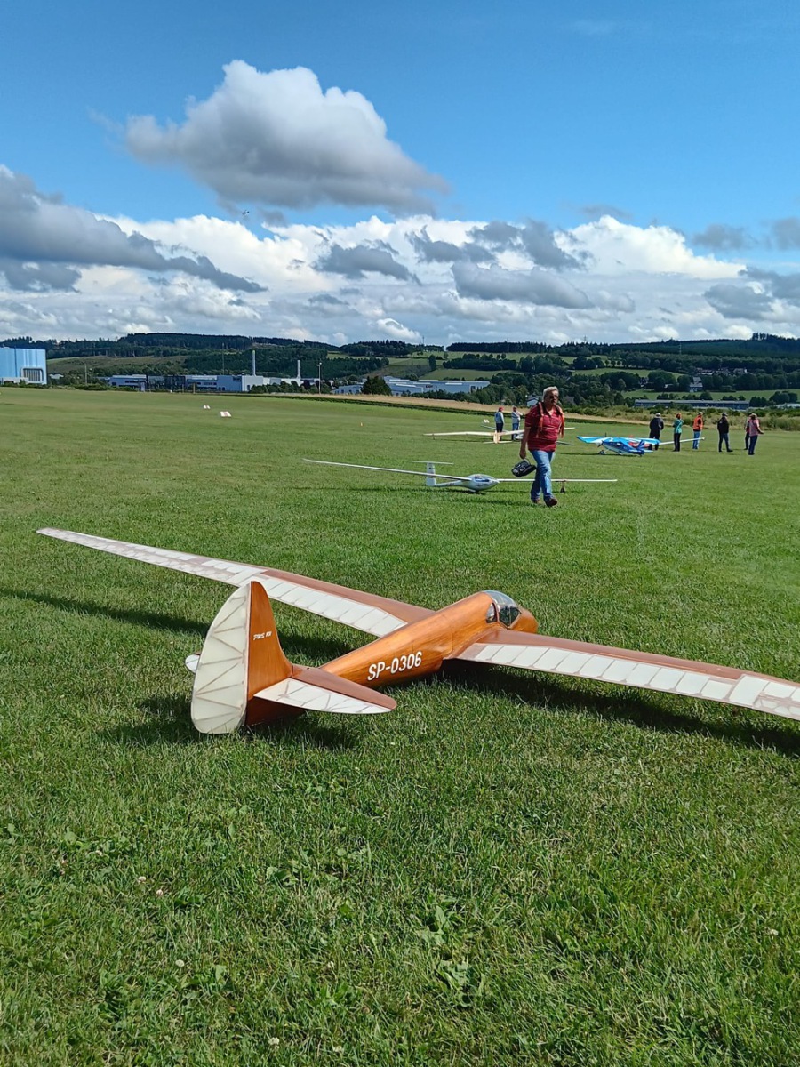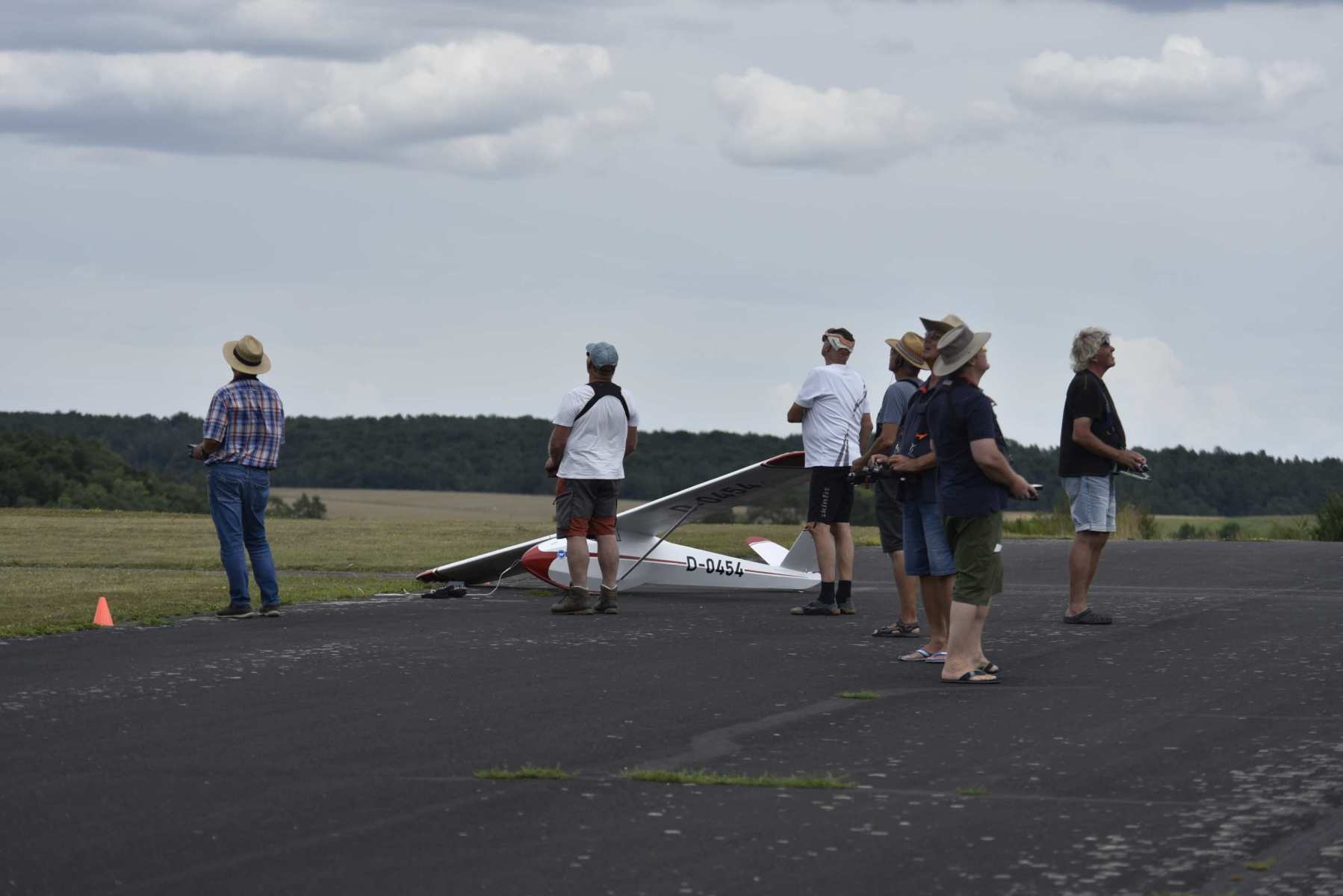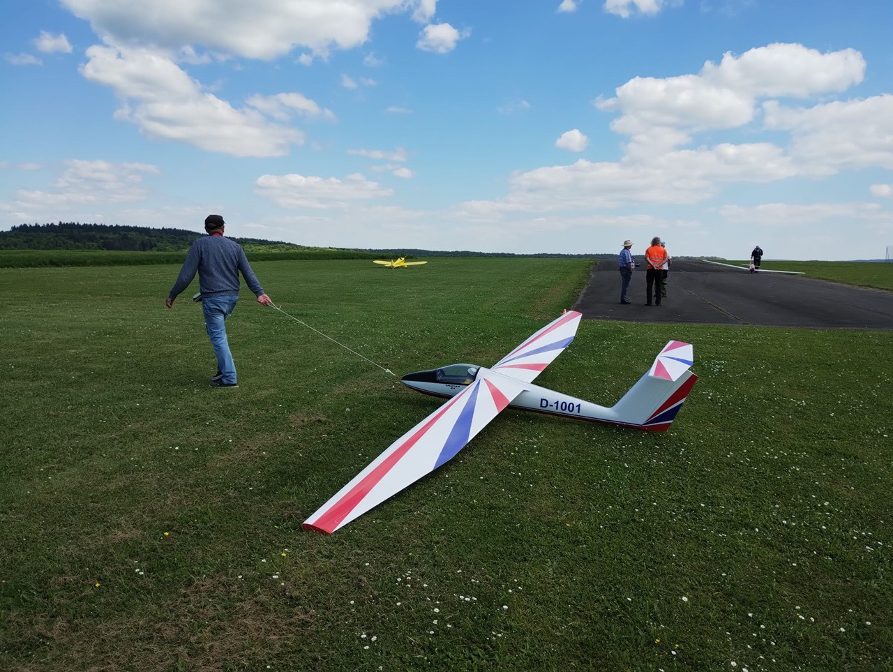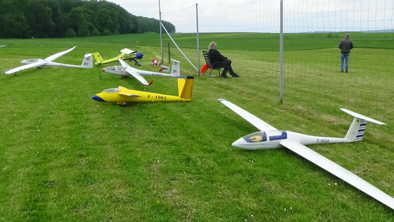 Alles in allem eine super Veranstaltung. Sonntags gab es noch mal was zum Schmunzeln. Unser Volker landete seine 1:2,5 ASK 23 sehr ordentlich, rollte vor seinen Füßen aus und dann plötzlich dieses unangenehme Wort „Sch……..“ !! Es fehlte die Kabinenhaube und der Sitz samt Pilot. Und keiner hatte gesehen wo der ausgestiegen war. Aber Hannelore persönlich war ja anwesend und es wurde direkt neu geordert……
