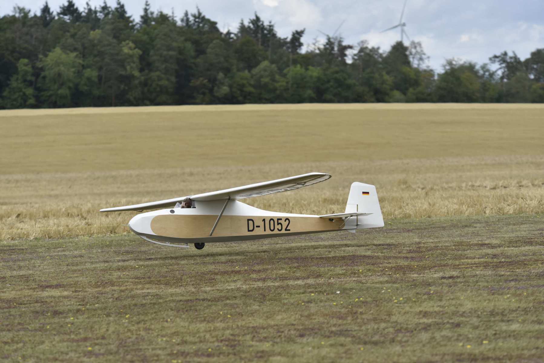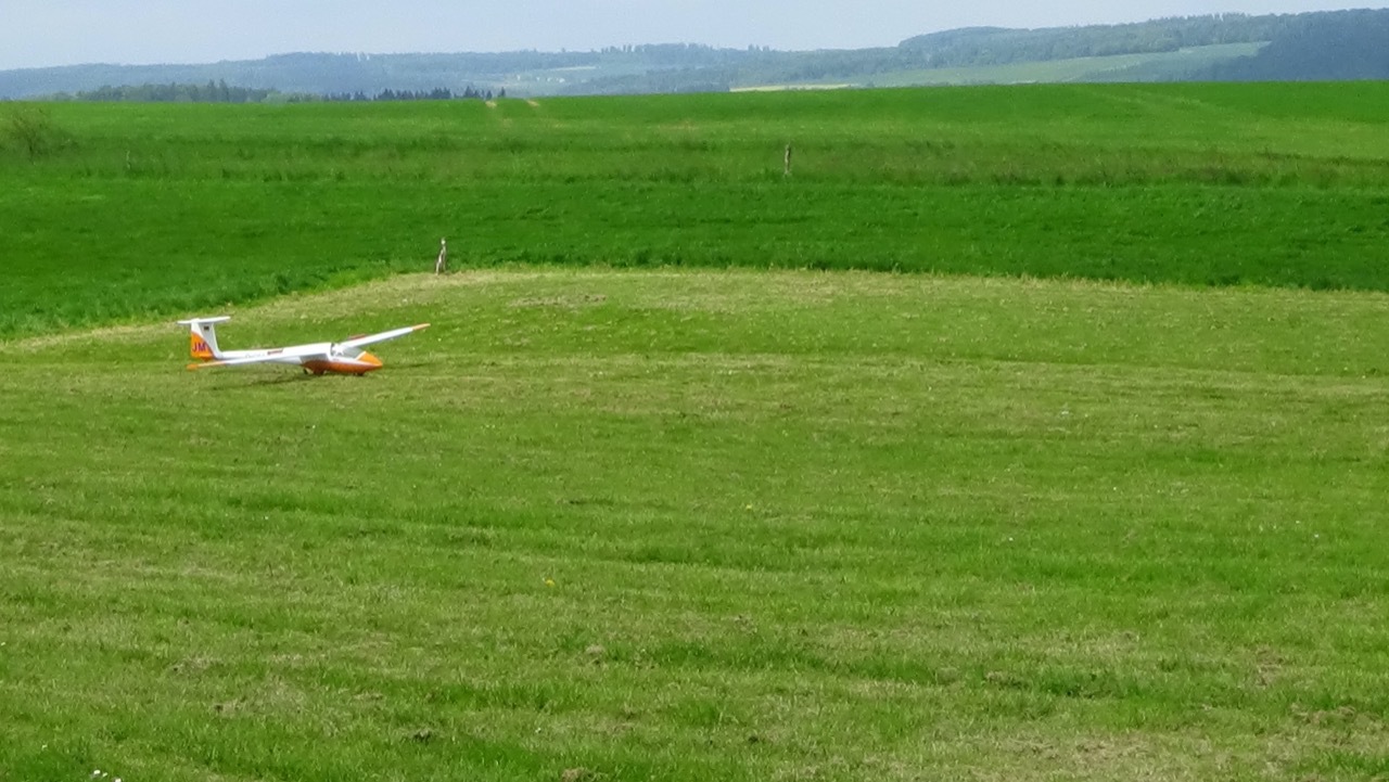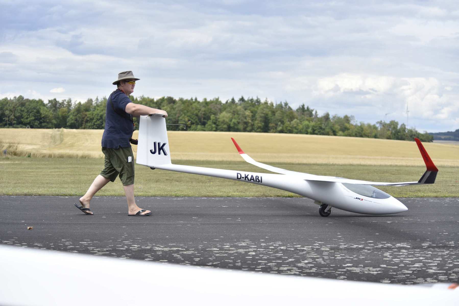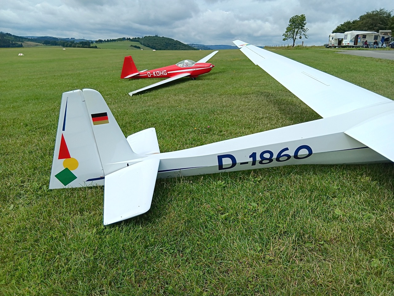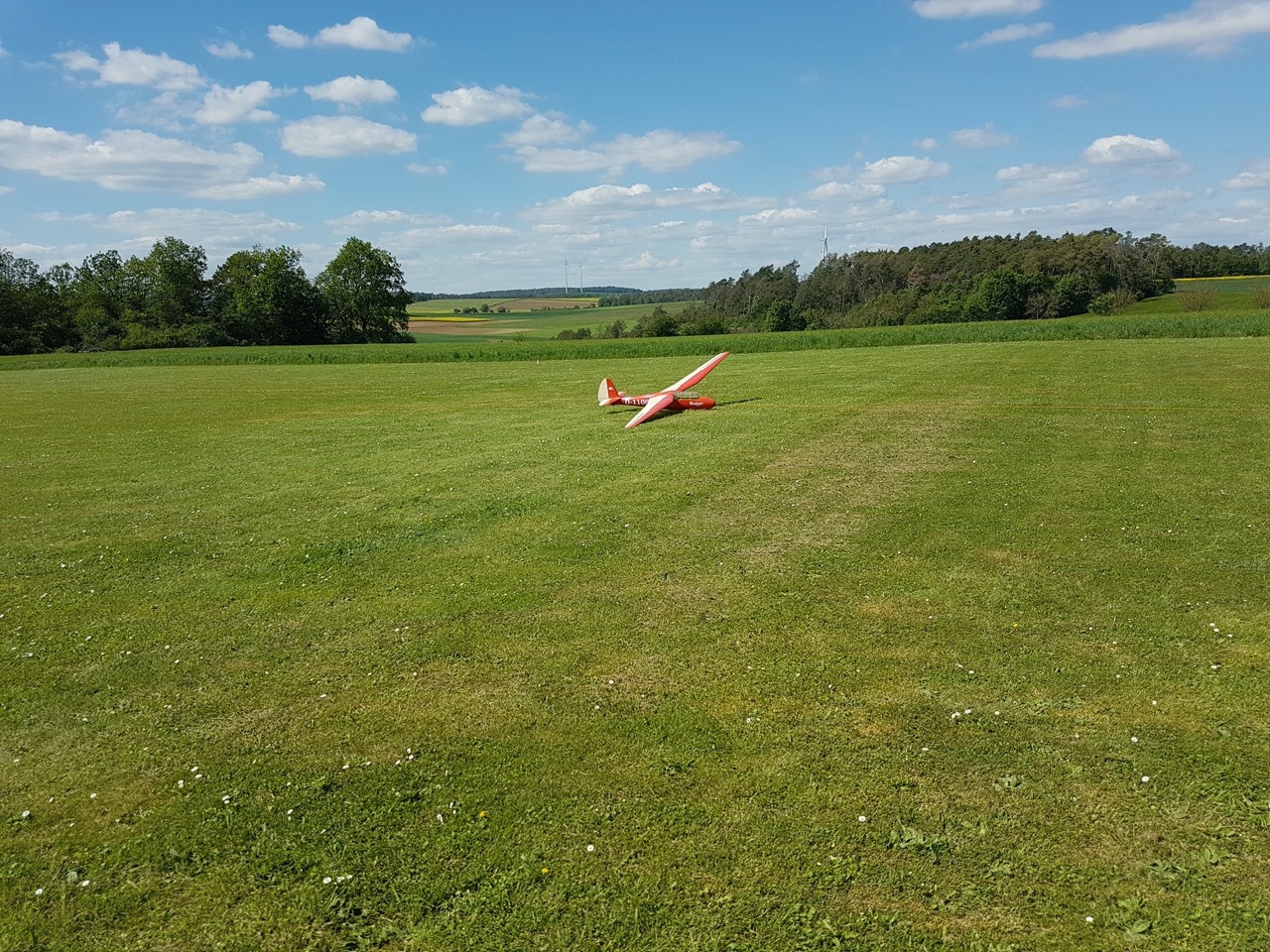 Alles in allem eine super Veranstaltung. Sonntags gab es noch mal was zum Schmunzeln. Unser Volker landete seine 1:2,5 ASK 23 sehr ordentlich, rollte vor seinen Füßen aus und dann plötzlich dieses unangenehme Wort „Sch……..“ !! Es fehlte die Kabinenhaube und der Sitz samt Pilot. Und keiner hatte gesehen wo der ausgestiegen war. Aber Hannelore persönlich war ja anwesend und es wurde direkt neu geordert……
