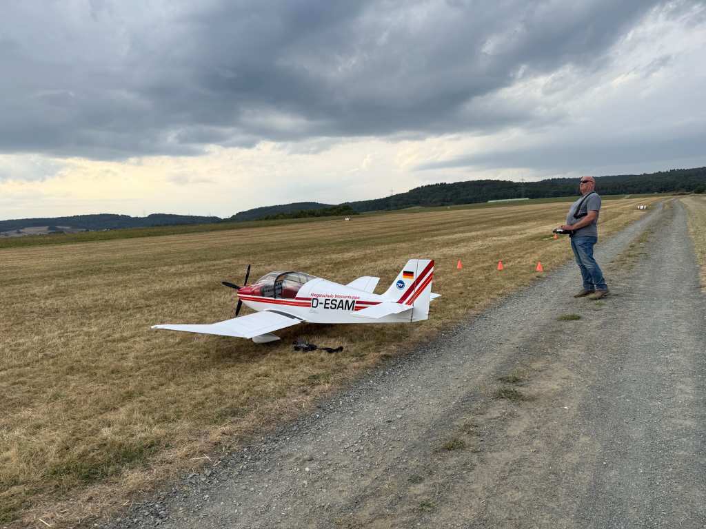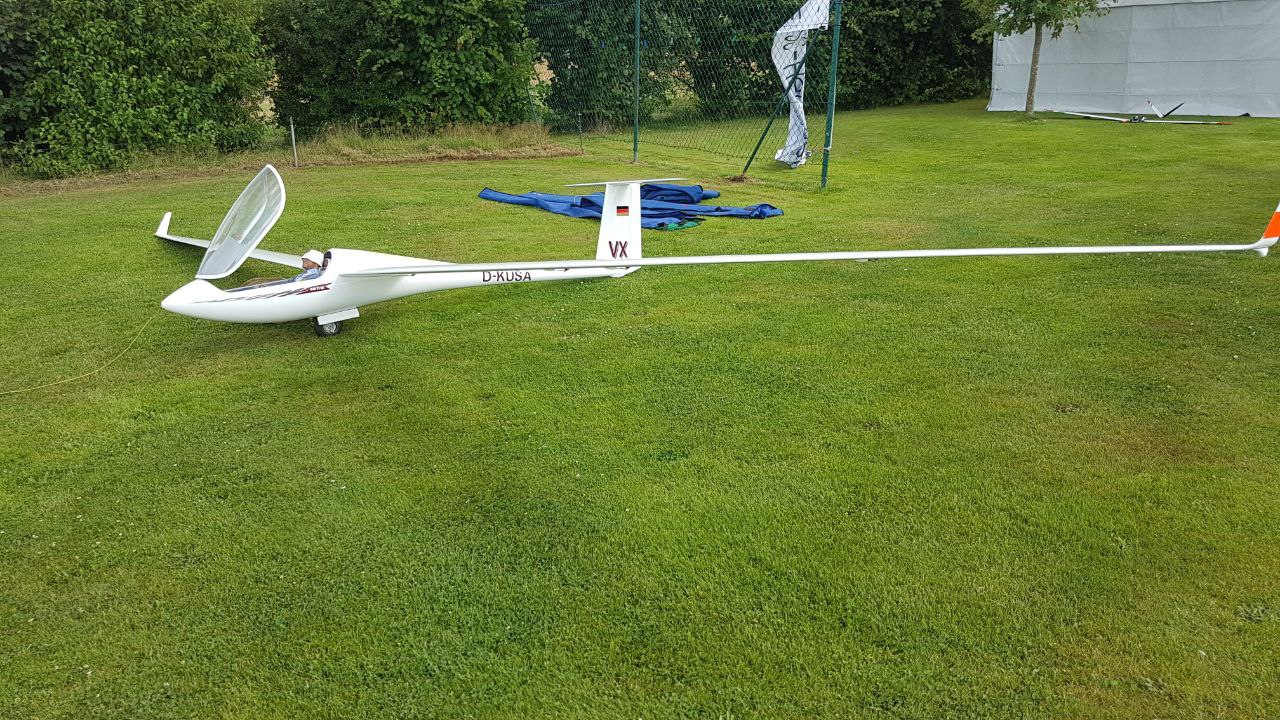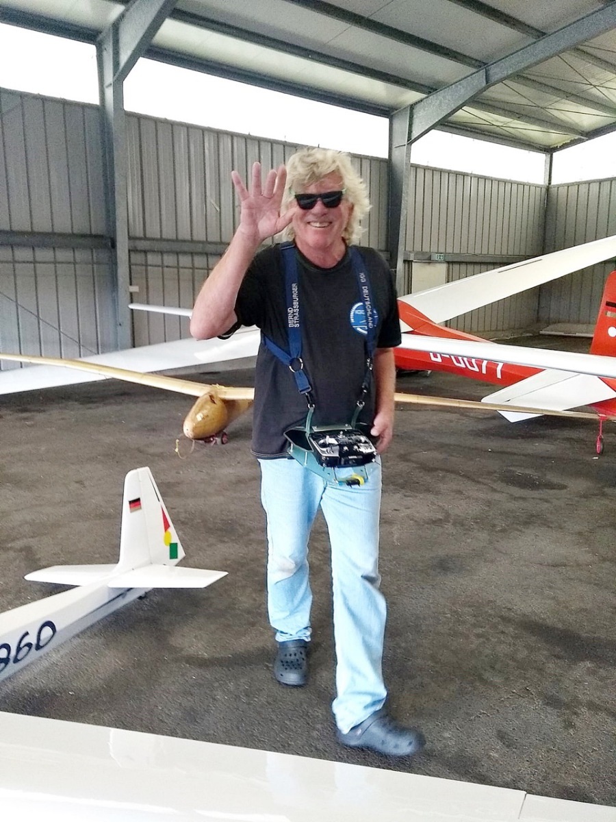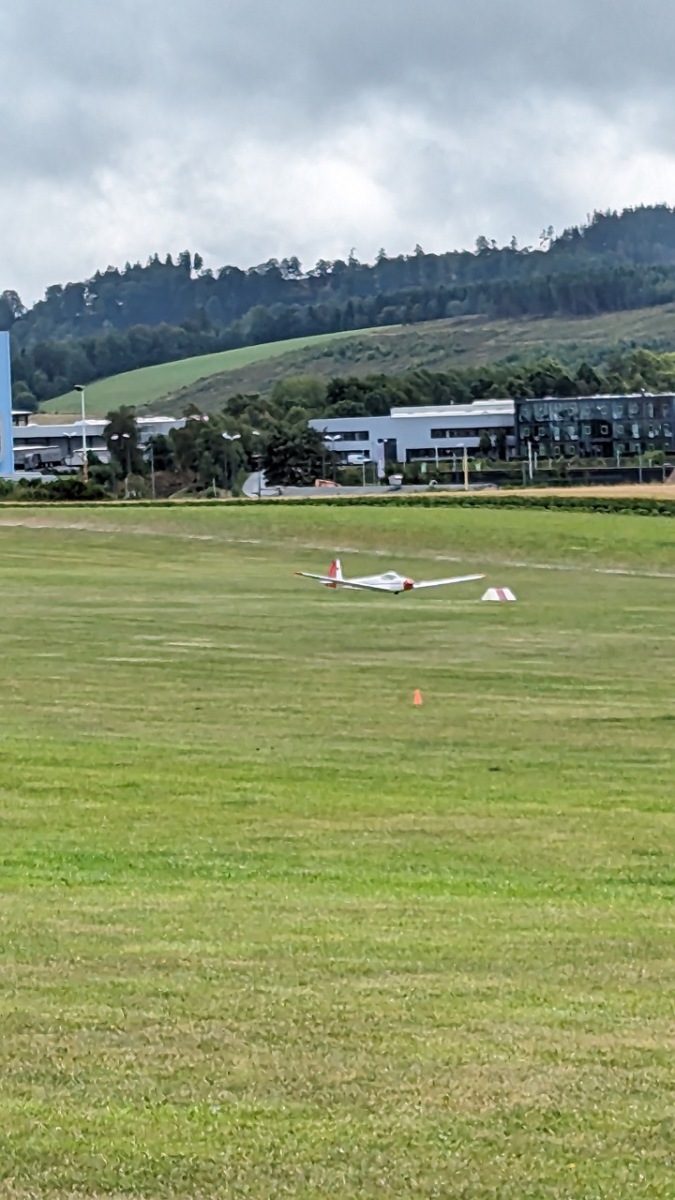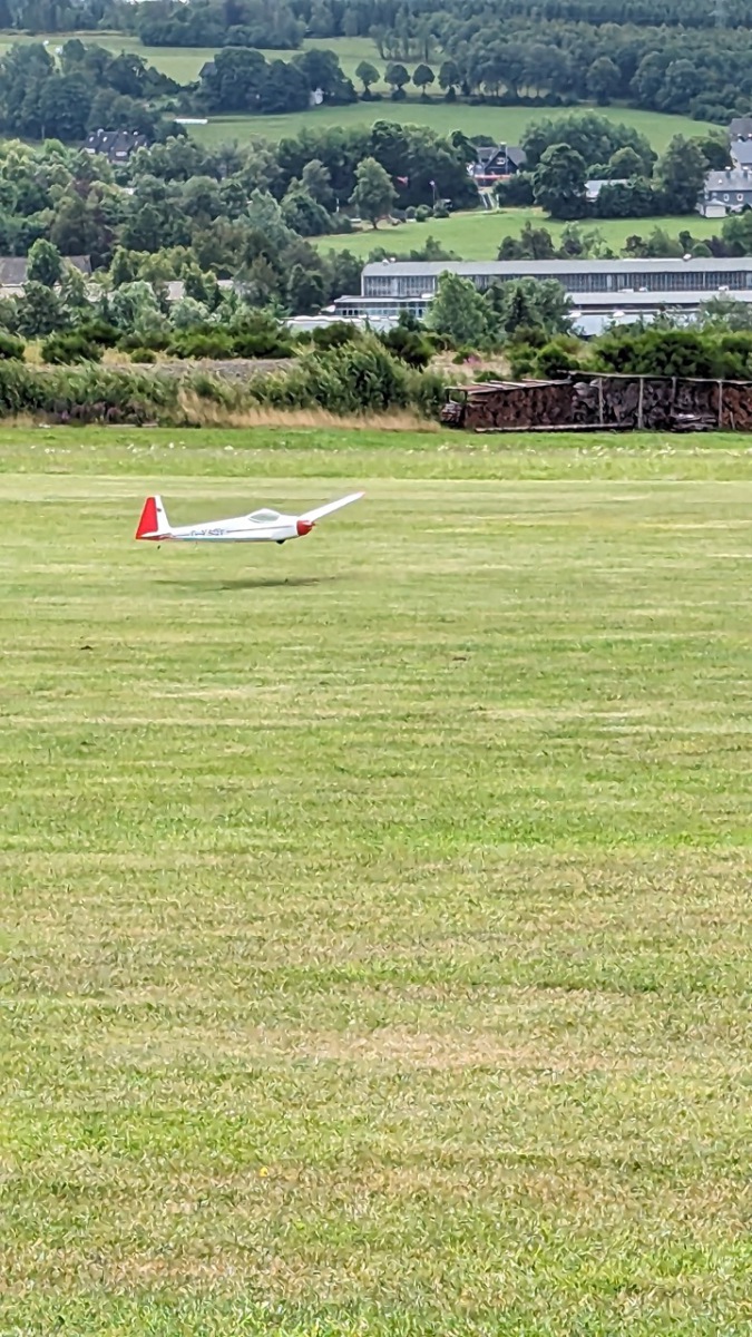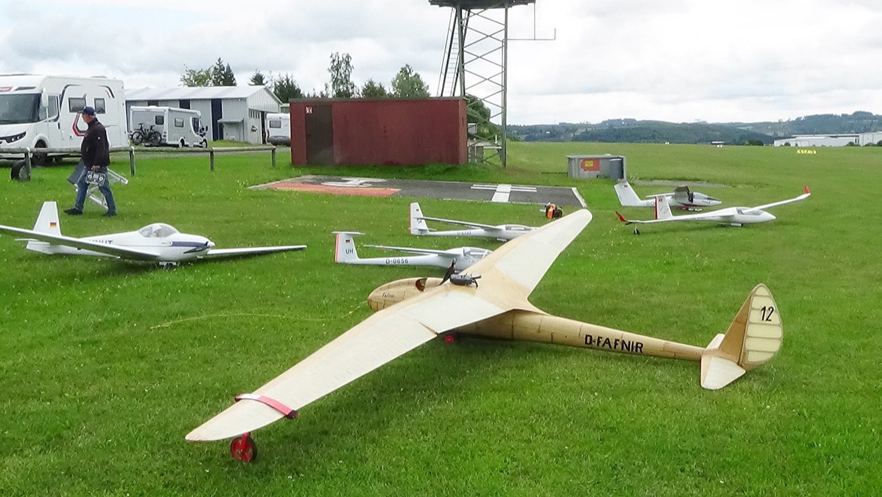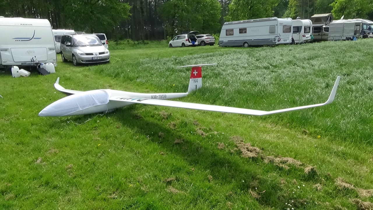 Alles in allem eine super Veranstaltung. Sonntags gab es noch mal was zum Schmunzeln. Unser Volker landete seine 1:2,5 ASK 23 sehr ordentlich, rollte vor seinen Füßen aus und dann plötzlich dieses unangenehme Wort „Sch……..“ !! Es fehlte die Kabinenhaube und der Sitz samt Pilot. Und keiner hatte gesehen wo der ausgestiegen war. Aber Hannelore persönlich war ja anwesend und es wurde direkt neu geordert……