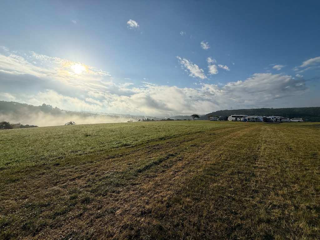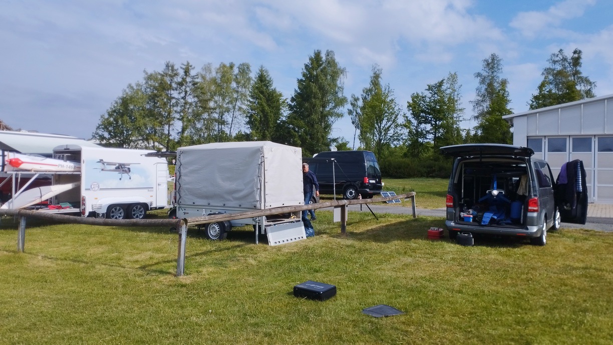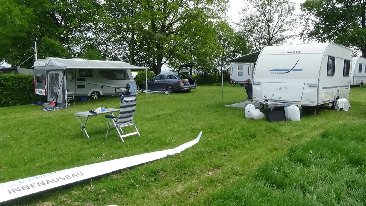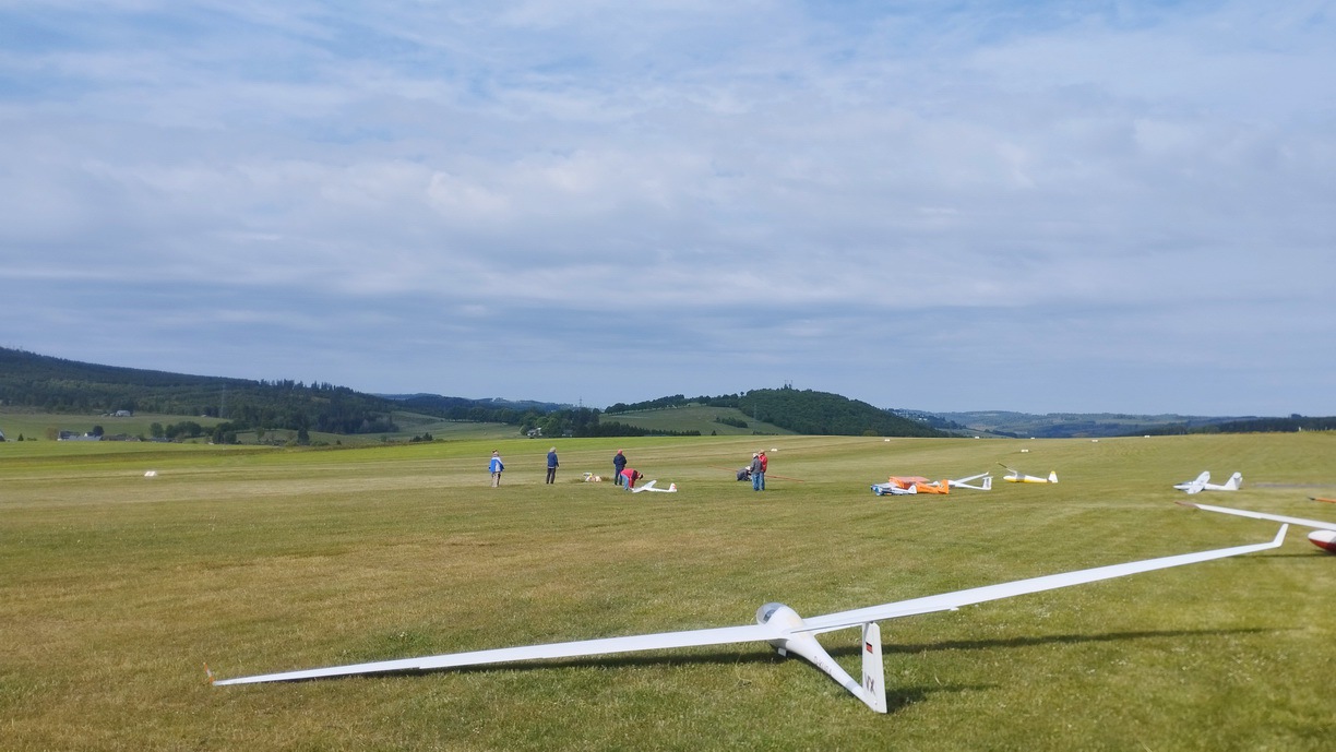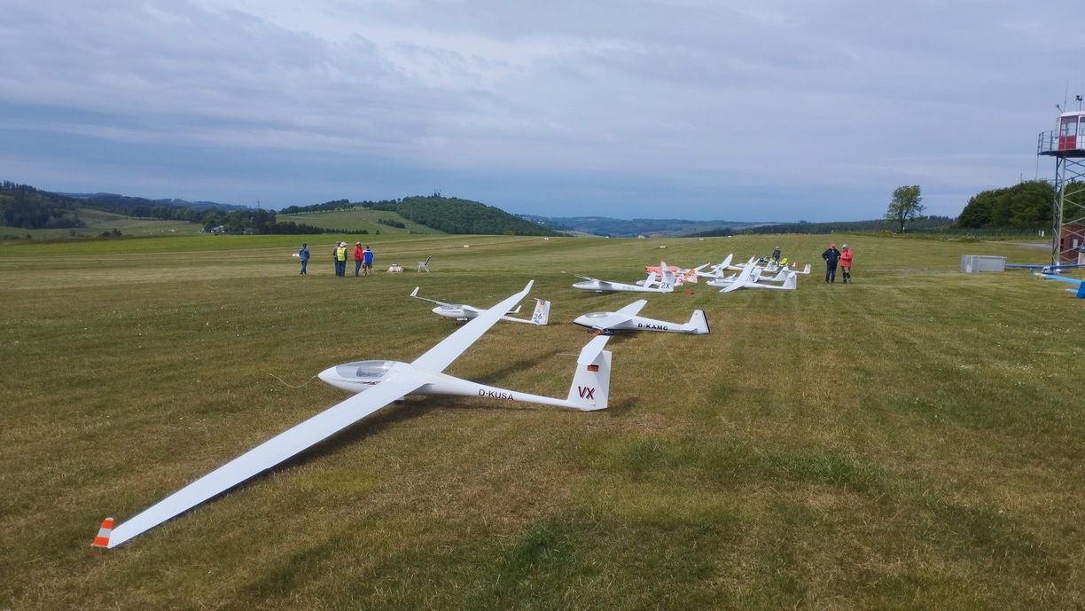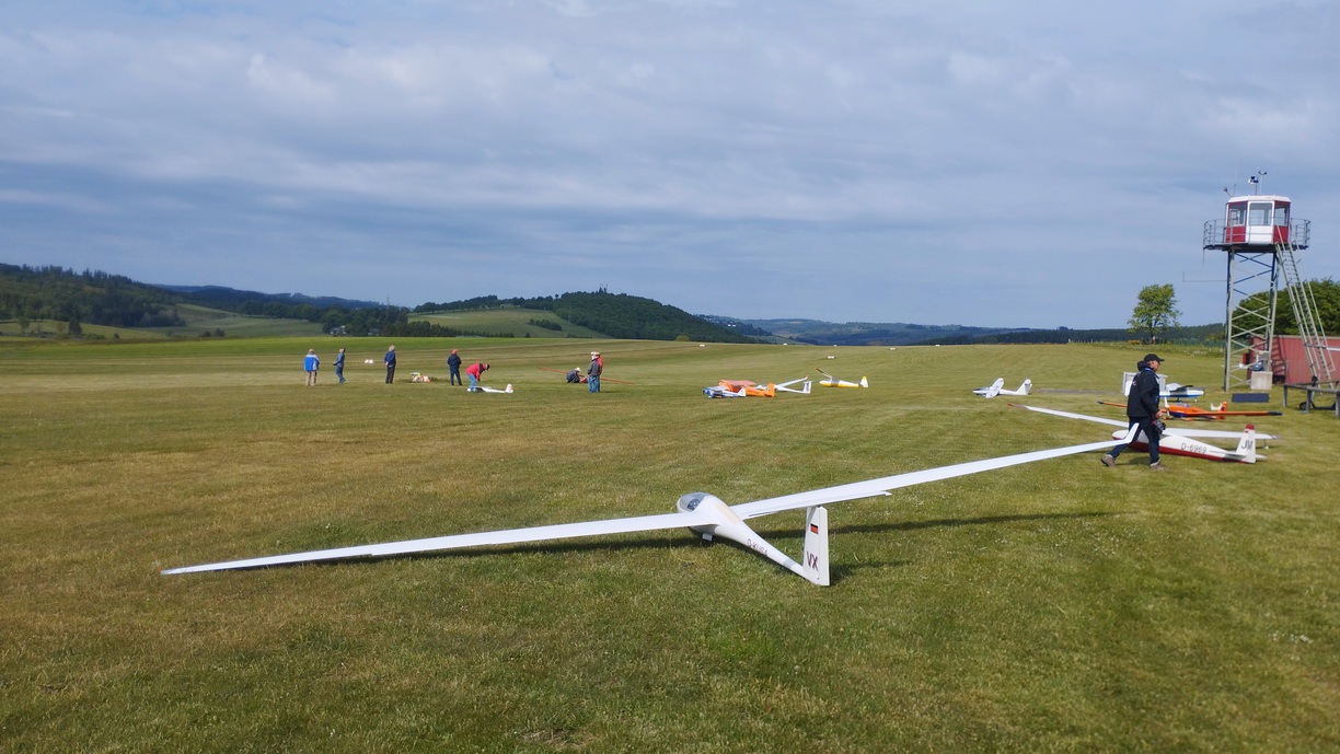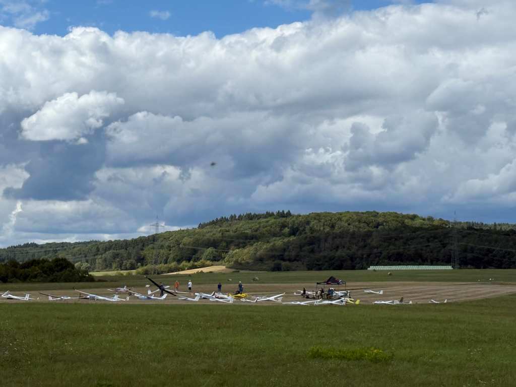 Die Männer um Vorstand Marco Itzel hatten das Gelände hervorragen vorbereitet. Die ersten Piloten reisten schon Montags an. Am Anfang war es noch Abends und Nachts empfindlich kalt und wir ließen den Tag draußen vor den Wohnwagen in Wolldecken eingehüllt ausklingen. Tagsüber aber herrschte super Thermik. Bei einer Platz-Ausrichtung Ost-West und einer Windrichtung Nord-Ost gab es keine jeglichen Probleme bei Starts und Landungen. Die Thermik war teilweise so stark dass unsere OLC-Piloten Dreiecke ohne einen einzigen Thermik-Kreis flogen. Eigentlich kein leichtes Unterfangen weil man beim Beenden des Dreiecks im Start/Zielkreis höher ankommen muss als man das Dreieck begonnen hat.