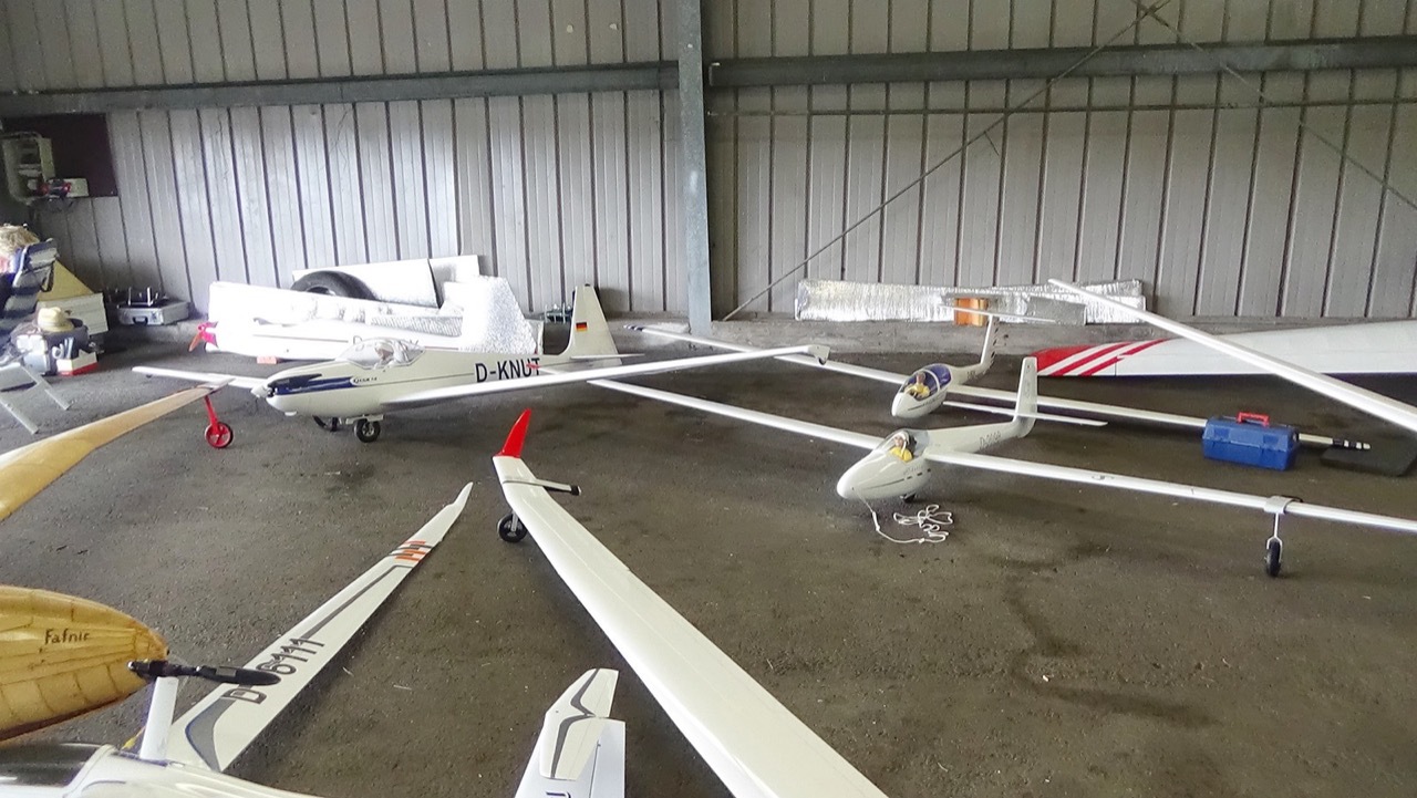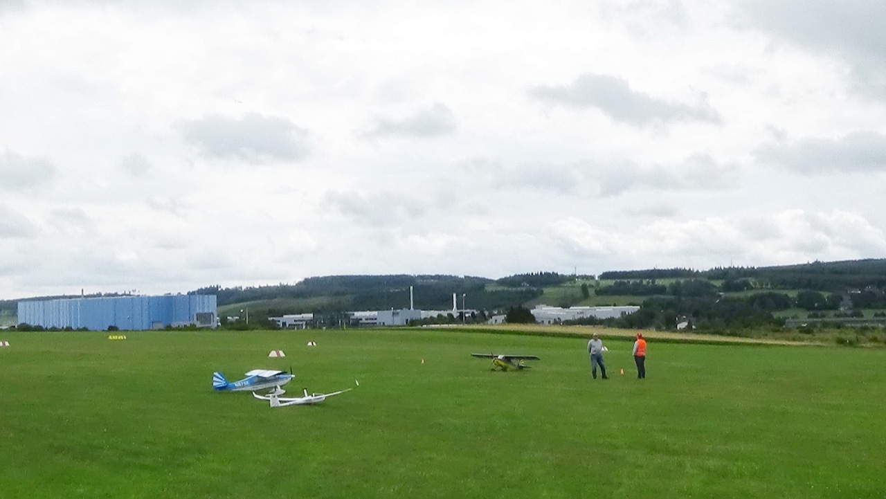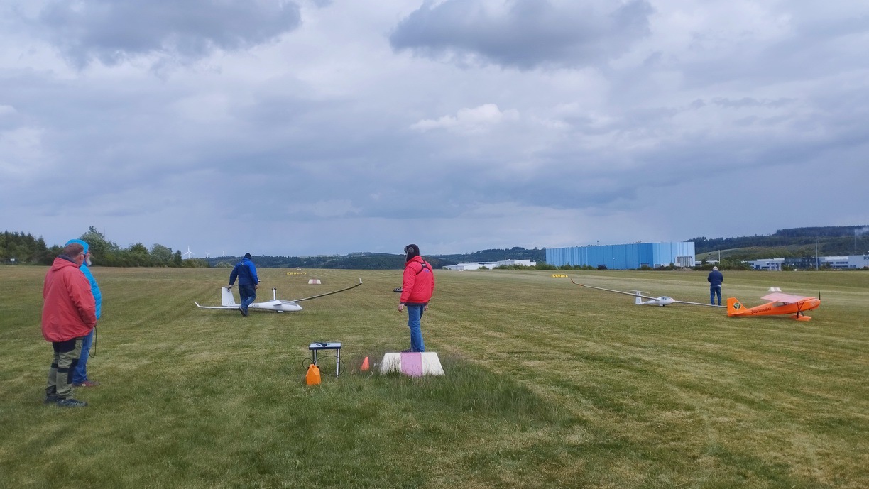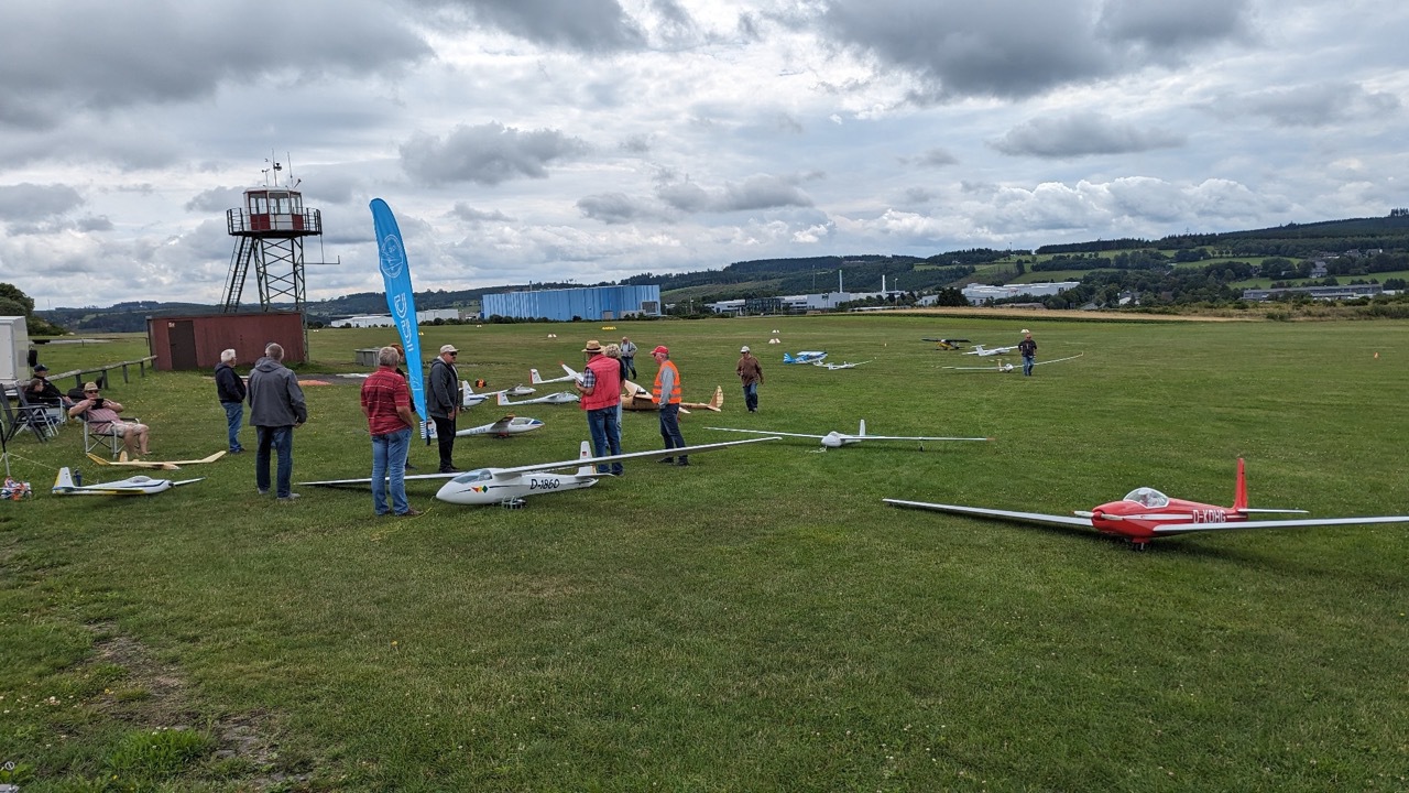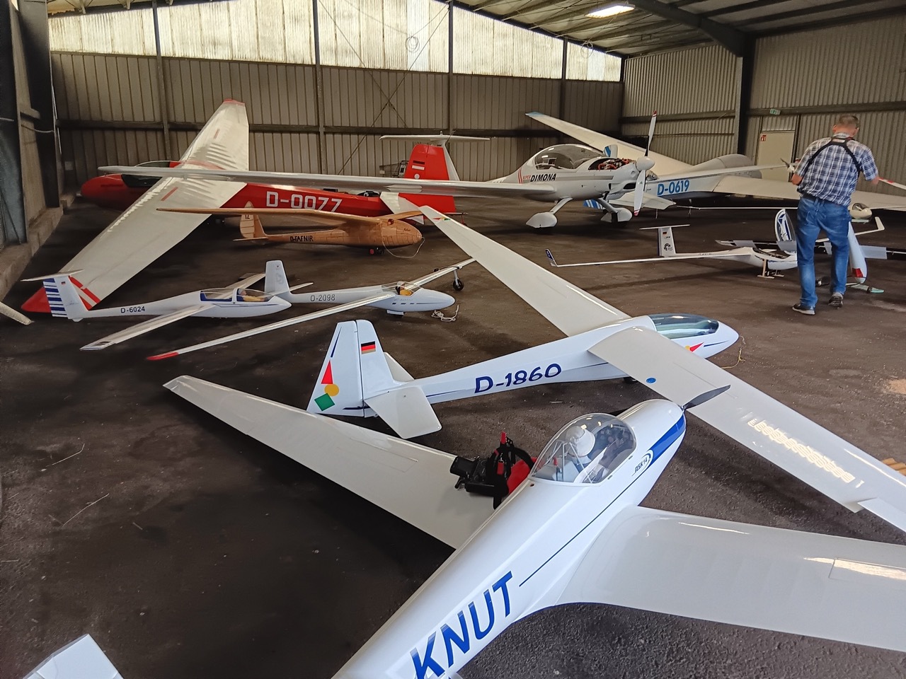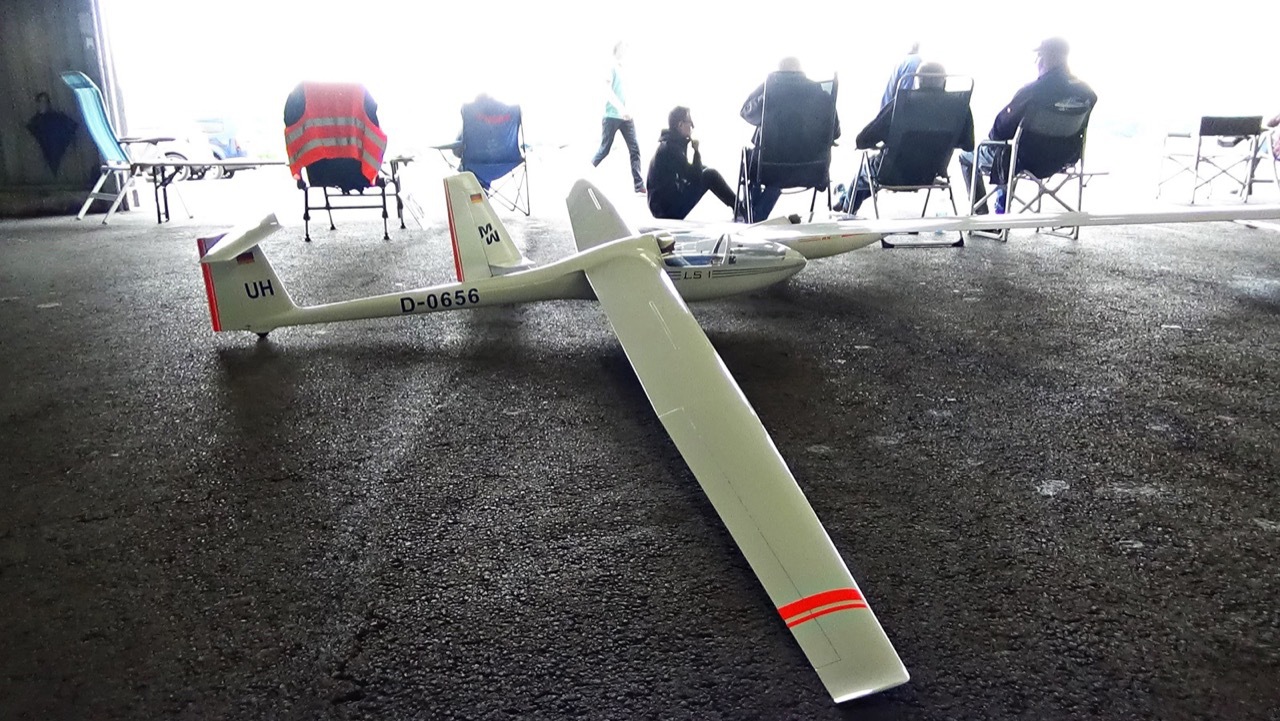 Am Samstag wurde ab 10:00 Uhr den ganzen Tag geflogen. Während zwei oder drei kleinen Regenschauern konnten unsere Modelle in einem riesigen Hangar direkt an der Startstelle untergestellt werden. Dieser Hangar wurde extra für uns IGGler ausgeräumt.