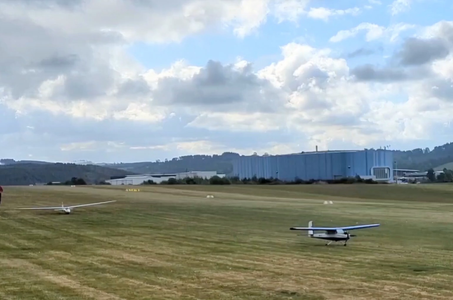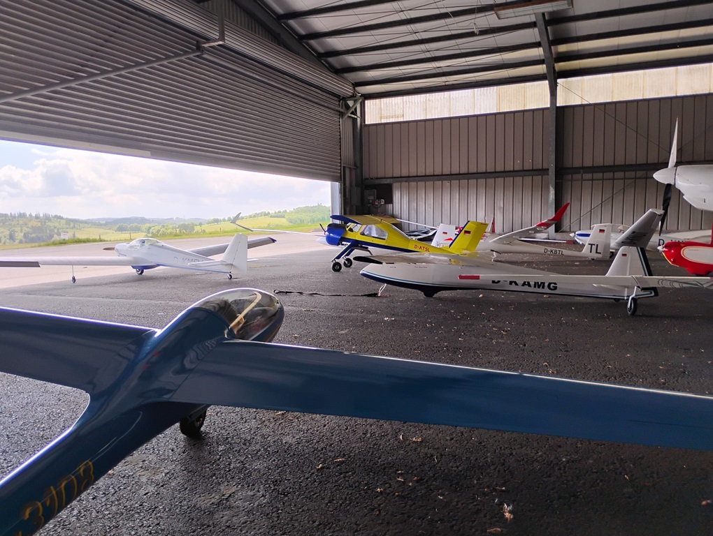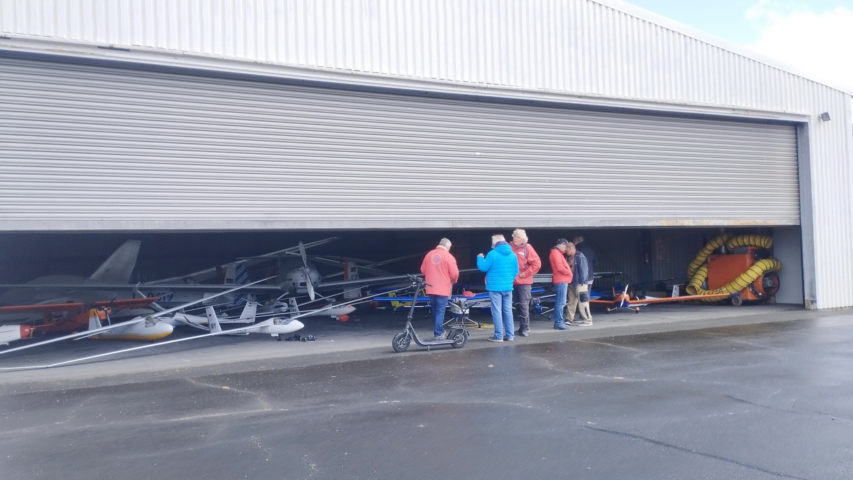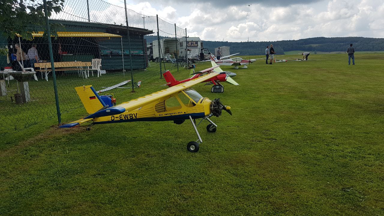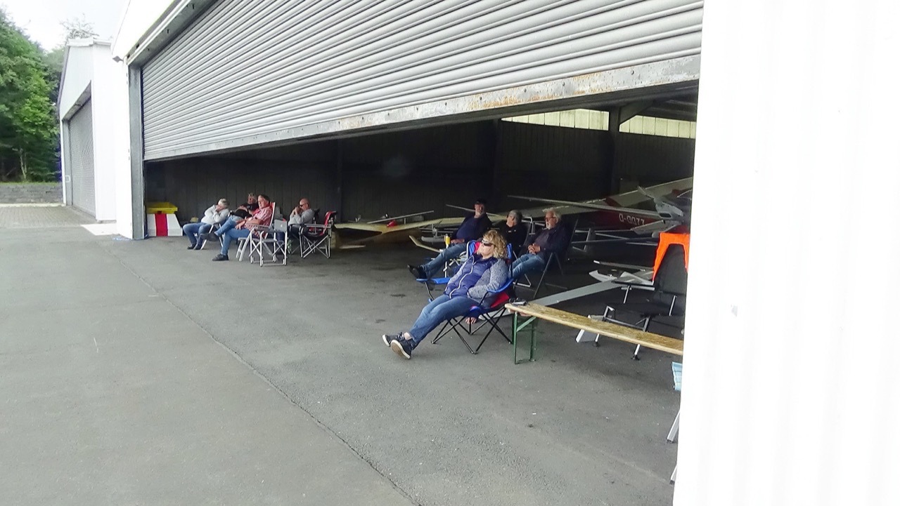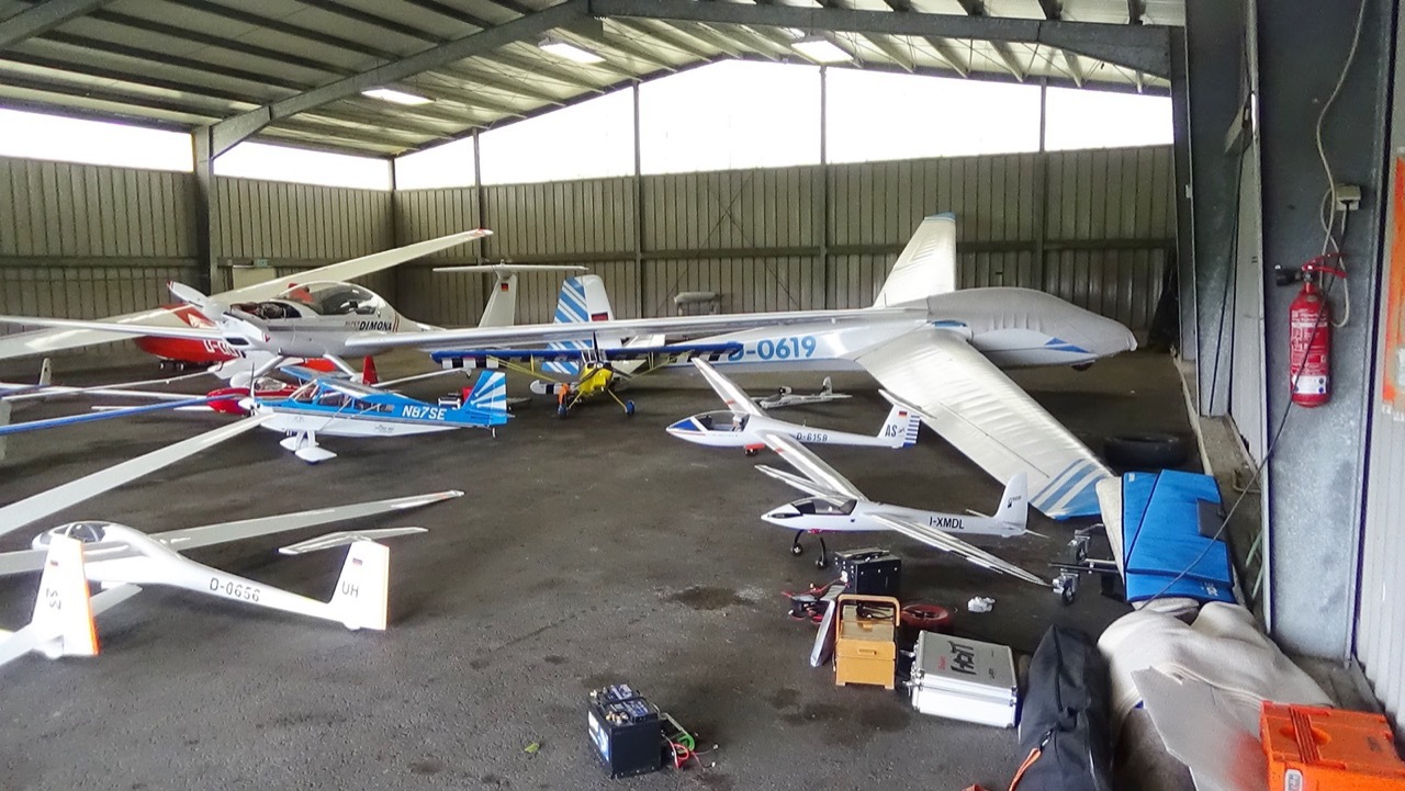 Am Samstag wurde ab 10:00 Uhr den ganzen Tag geflogen. Während zwei oder drei kleinen Regenschauern konnten unsere Modelle in einem riesigen Hangar direkt an der Startstelle untergestellt werden. Dieser Hangar wurde extra für uns IGGler ausgeräumt.
