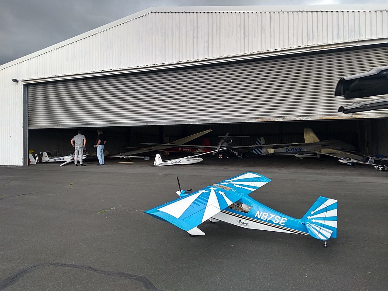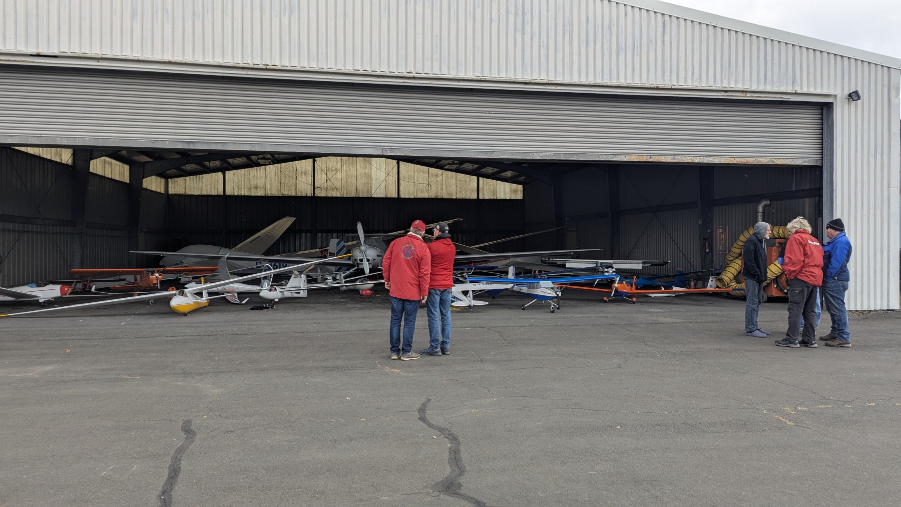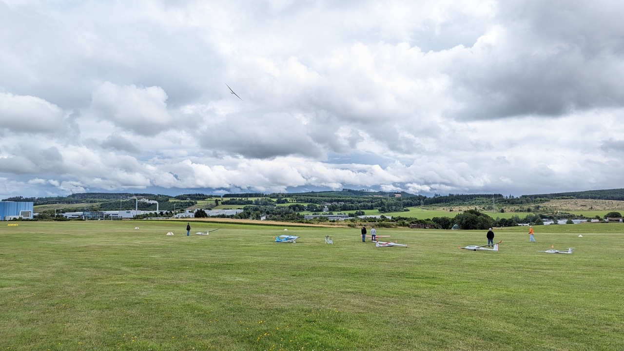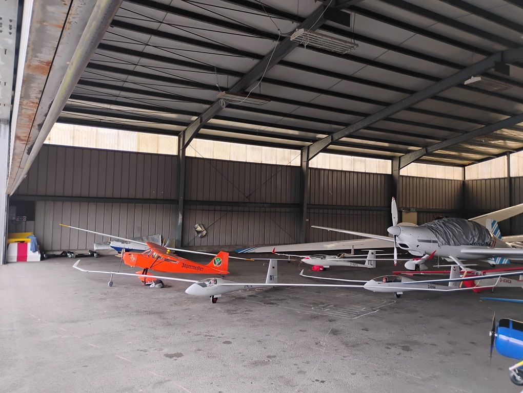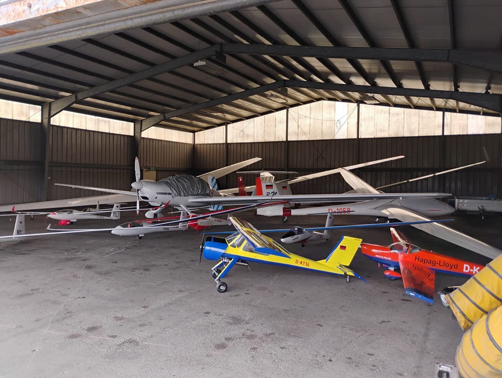Am Samstag wurde ab 10:00 Uhr den ganzen Tag geflogen. Während zwei oder drei kleinen Regenschauern konnten unsere Modelle in einem riesigen Hangar direkt an der Startstelle untergestellt werden. Dieser Hangar wurde extra für uns IGGler ausgeräumt.
