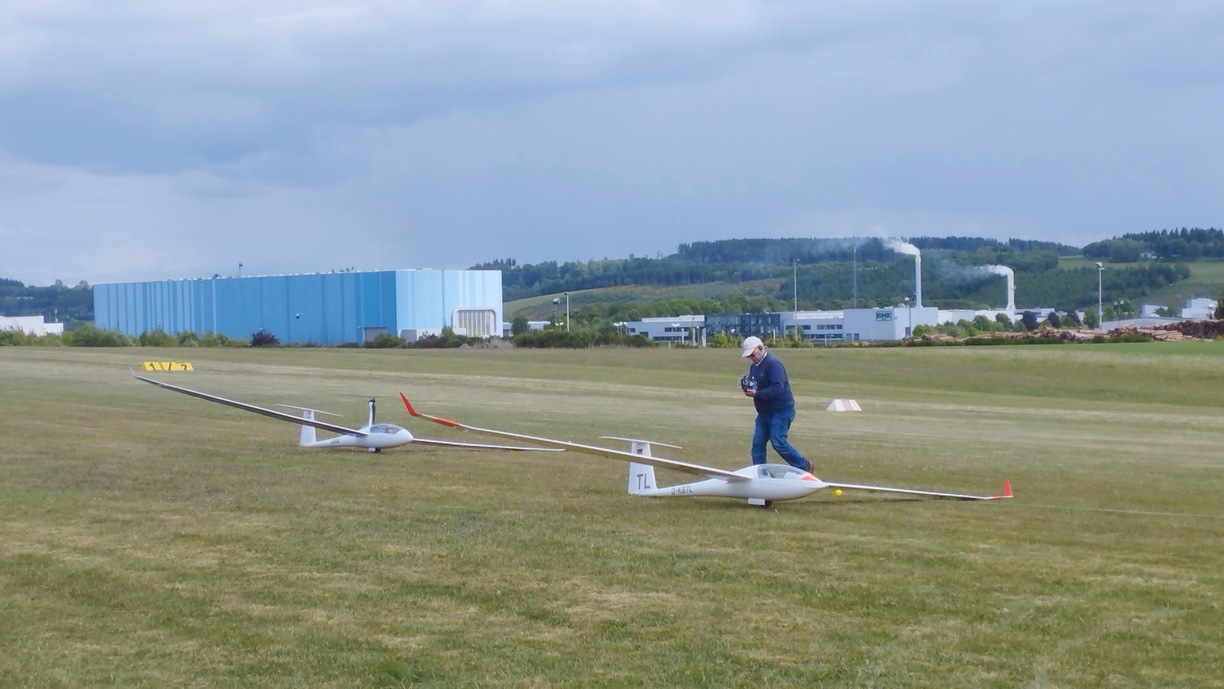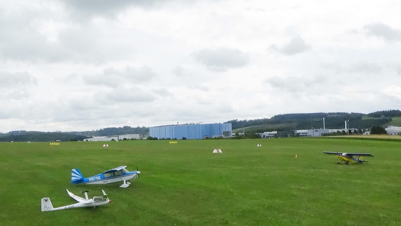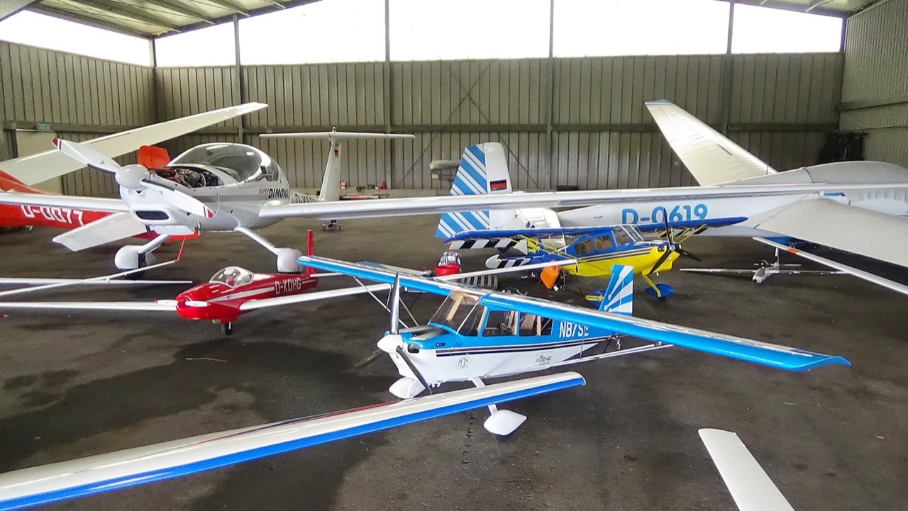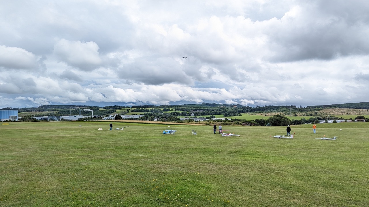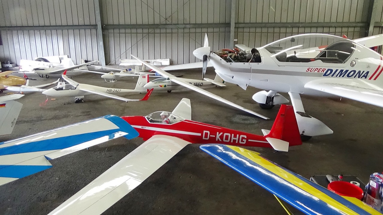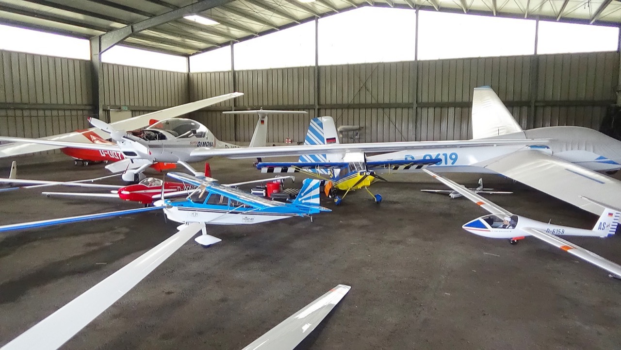 Am Samstag wurde ab 10:00 Uhr den ganzen Tag geflogen. Während zwei oder drei kleinen Regenschauern konnten unsere Modelle in einem riesigen Hangar direkt an der Startstelle untergestellt werden. Dieser Hangar wurde extra für uns IGGler ausgeräumt.