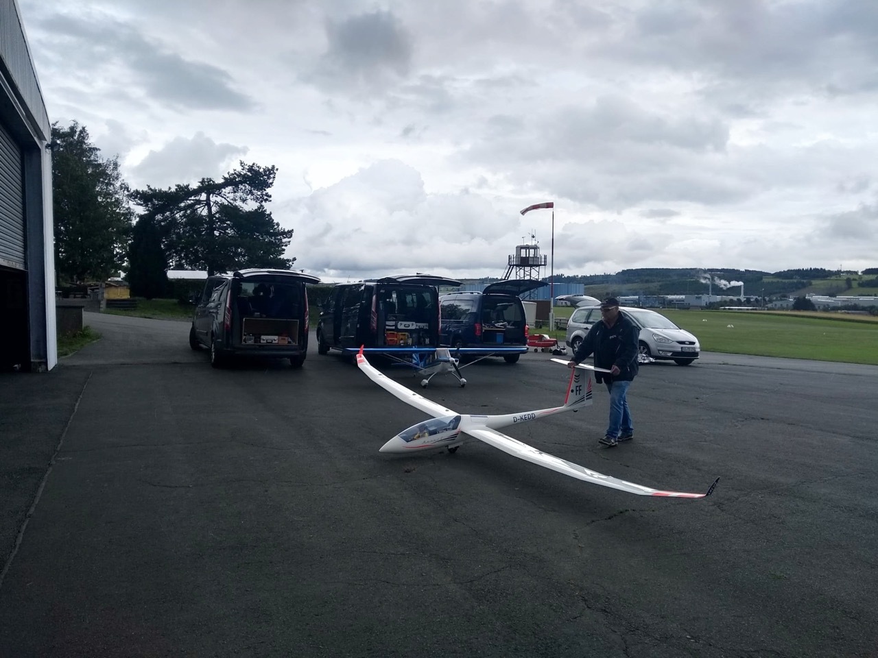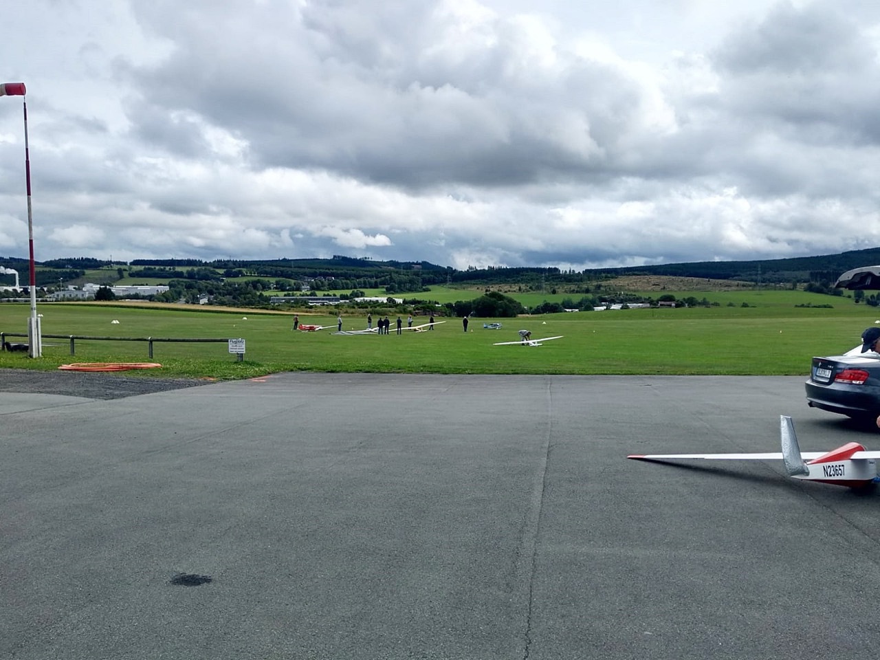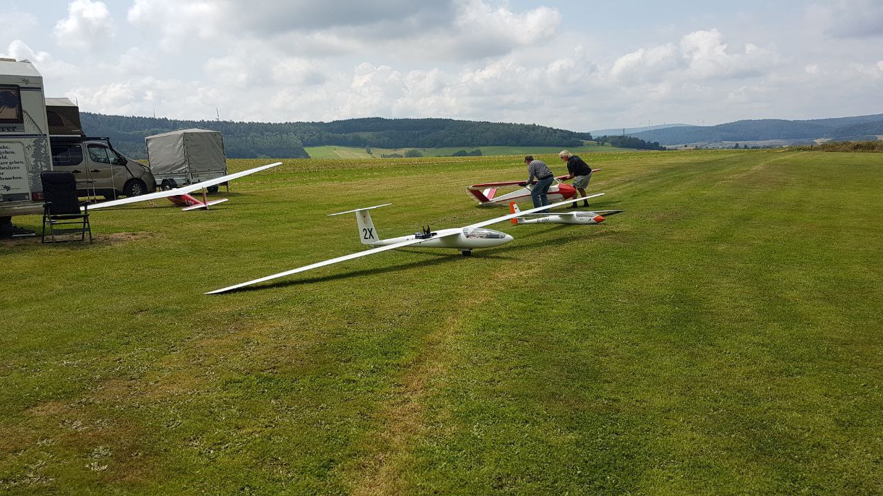 Vom 28.07.-30.07. waren wir wieder Gast auf dem Sportflugplatz im Wittgensteiner Schameder. Einige Piloten, darunter auch die IGG-Team-Mitglieder Knut und Bernd waren schon Donnerstag den 27.07. angereist. Wegen Dauerregen war aber an diesem Tag nicht an Fliegen zu denken. Auch für Freitag war schlechtes Regenwetter voraus gesagt. Aber die Meteorologen hatten sich geirrt. Am Freitag konnte ab 11:00 Uhr geflogen werden.
