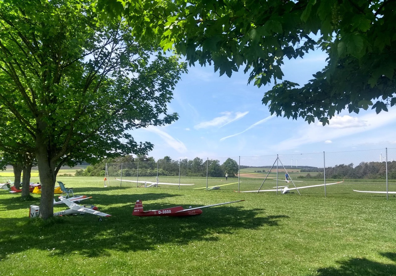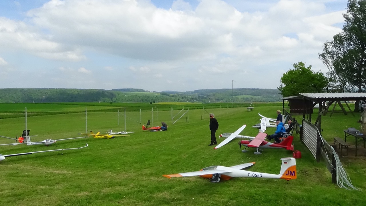 Flugraum-Technisch gibt es fast keine Einschränkungen. Auch eine Asphalt-Piste ist vorhanden, die oft von den Eigenstartern genutzt wurde. Der Schleppbetrieb fand wie in den letzten Jahren nördlich dieser Asphaltpiste auf Gras statt. Pünktlich ab dem Mittwoch vor Christi Himmelfahrt stellte sich super Wetter mit hervorragender Thermik ein. 25-30 Piloten nahmen an dem Treffen teil und besonders viele IGGler aus dem süddeutschen Raum kamen zu diesem Treffen und nahmen zum ersten mal an einer IGG-Veranstaltung teil. Es wurden viele neue, nette Bekanntschaften geschlossen.